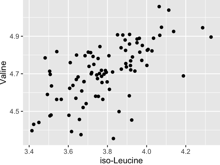 geom_point(aes(x = `iso-Leucine`, y = Valine))
