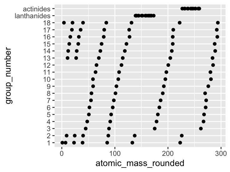 geom_point(aes(y = group_number, x = atomic_mass_rounded))